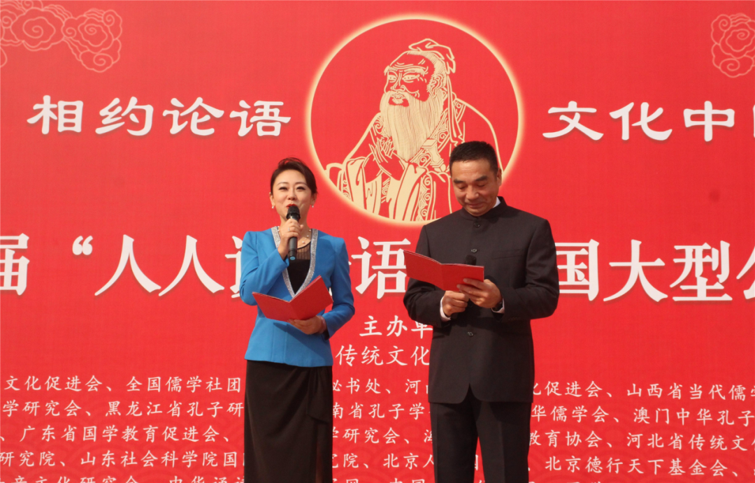 柳河东先生讲:记载孔子思想、精神、智慧的《论语》,经过两千余年历史长河的淘洗、打磨、浸润,其地位和影响不断提升,在中华文化典籍中拥有无与伦比、举足轻重的地位。劝人读论语,是最好的善行义举,是福德绵厚之功。“相约《论语》 文化中国”,是系统工程,是伟大事业。让我们一起与经典为友,与圣贤同行,涵养心性,变化气质,提升自我,并进而影响、带动、引领我们的子弟、亲友,以及更多的人,共同营造良好学习氛围和强大能量场,共同开创“读论语、行论语、向圣贤、做君子”时代新风。活动在全体成员齐唱国歌之后拉开帷幕,全员齐诵《论语》学而、为政、尧曰篇及《礼运·大同》。